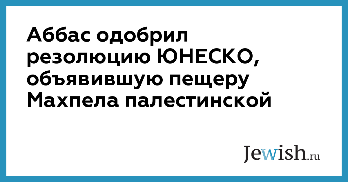 Председатель Палестинской автономии Махмуд Аббас высоко оценил антиизраильскую резолюцию ЮНЕСКО, в которой Пещера Патриархов и историческая часть Хеврона объявлены «частью культурного наследия палестинцев», сообщает MIGnews.