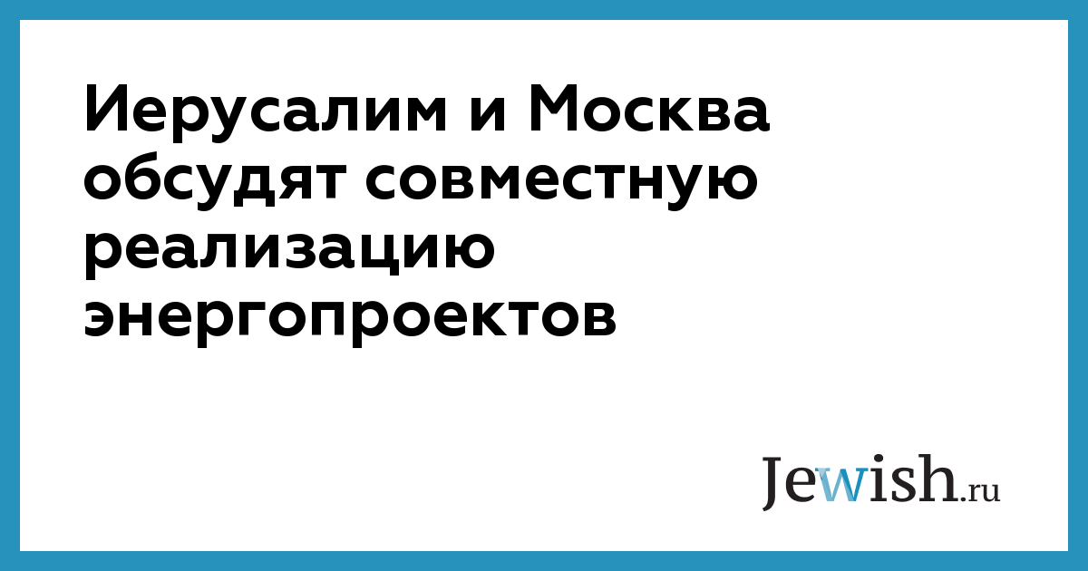 Иерусалим и Москва обсудят совместную реализацию энергопроектов