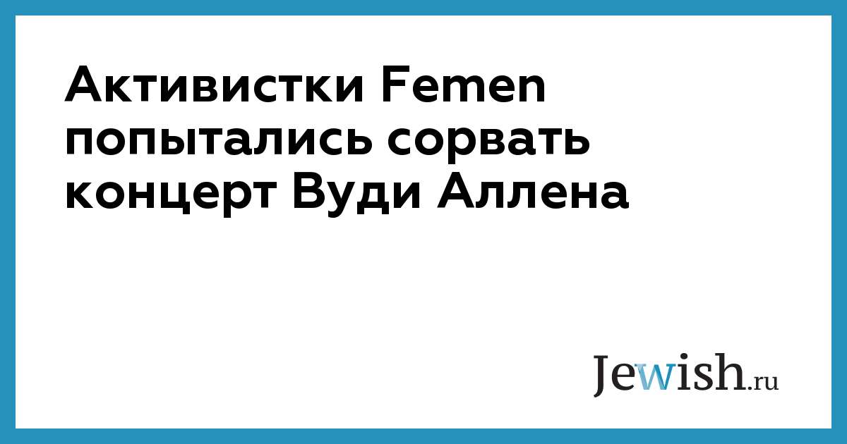 Активистки Femen попытались сорвать концерт ансамбля Вуди Аллена, который проходил 11 июля в Гамбурге. Участницы феминистской группы выбежали на сцену во время концерта джазового ансамбля, в котором известный режиссер играл на кларнете. Полуголые активистки, на телах которых были написаны лозунги, со сцены обвинили 81-летнего Аллена в сексуальном насилии в отношении его приемной дочери. Охрана увела женщин и выступление было продолжено, сообщает Local.