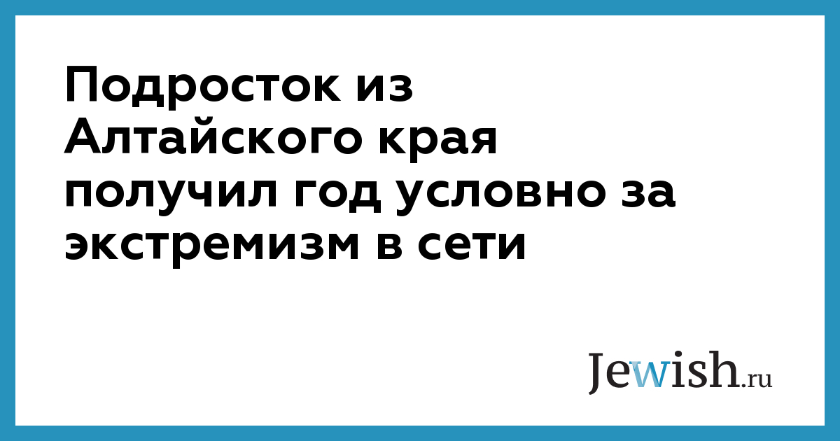 Суд приговорил 17-летнего жителя села Михайловское Алтайского края к году условного заключения за преступления экстремистской направленности. Поводом для приговора стали посты, сделанные подростком в соцсетях в сентябре 2016 года. По заключению следственного комитета, этими публикациями молодой человек способствовал возбуждению ненависти по отношению к евреям и выходцам с Кавказа. Некоторые посты в том числе содержали призывы к насилию.