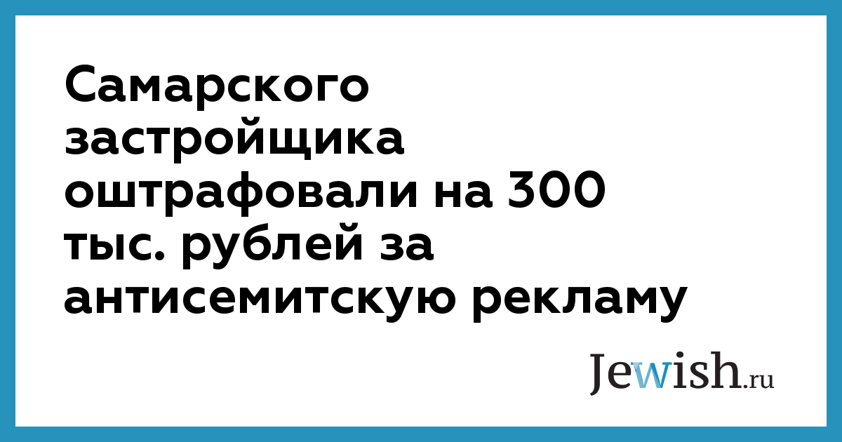 Самарского застройщика оштрафовали на 300 тыс. рублей за антисемитскую рекламу