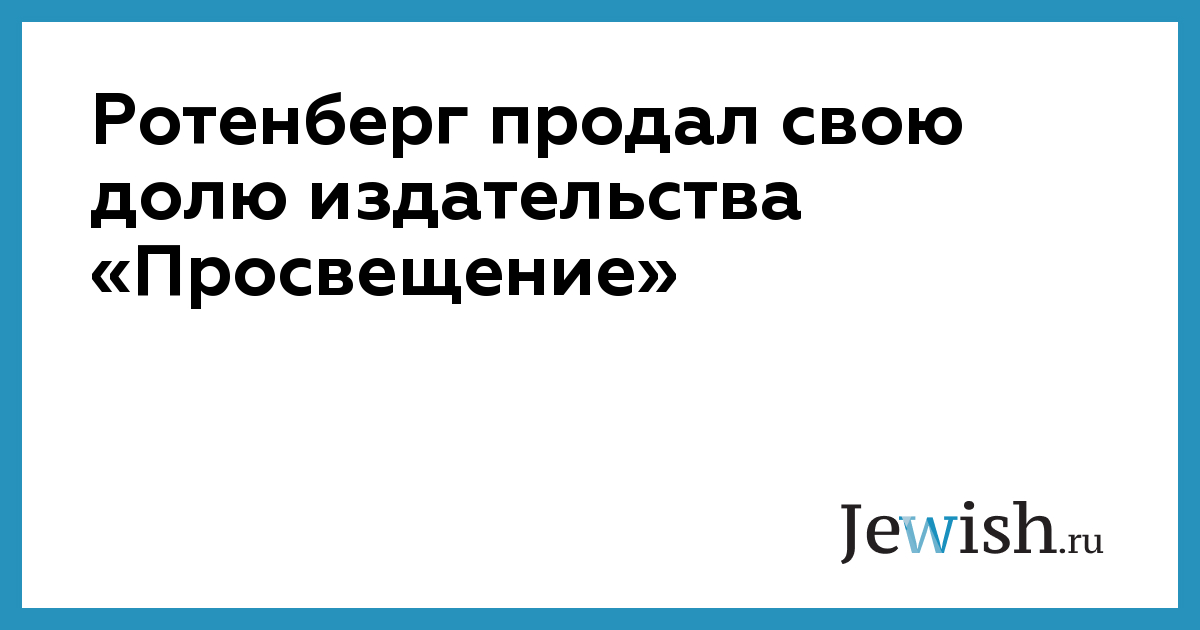 Миллиардер Аркадий Ротенберг продал принадлежащую ему долю в издательстве «Просвещение», крупнейшем в России издателе учебников. Об этом сообщают «Известия». По словам представителя бизнесмена, тот продолжит сотрудничество с компанией, но только творческое. В частности, в ближайшее время планируется выпуск электронного учебника по дзюдо (Аркадий Ротенберг является вице-президентом Федерации дзюдо России).