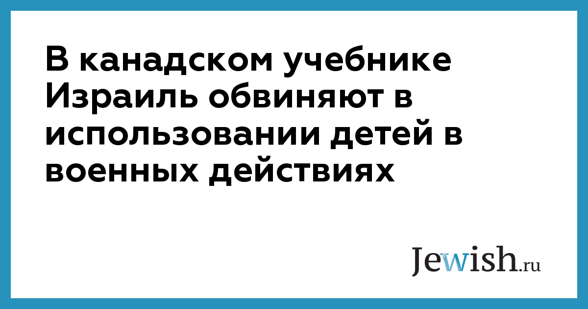 В канадском учебнике Израиль обвиняют в использовании детей в военных действиях
