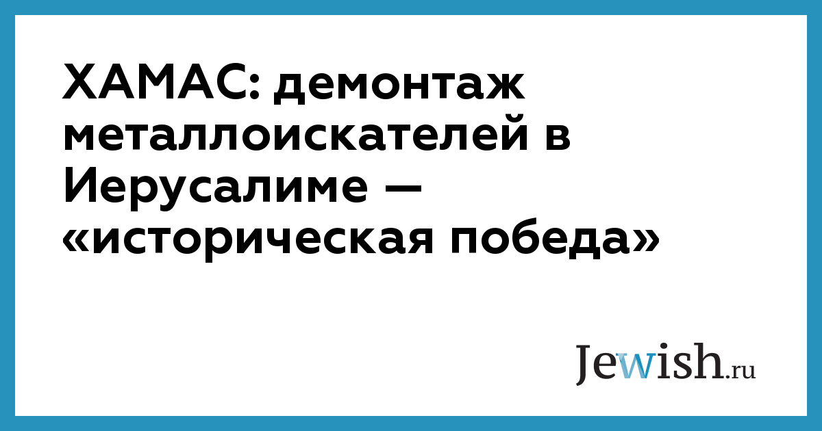 ХАМАС: демонтаж металлоискателей в Иерусалиме — «историческая победа»