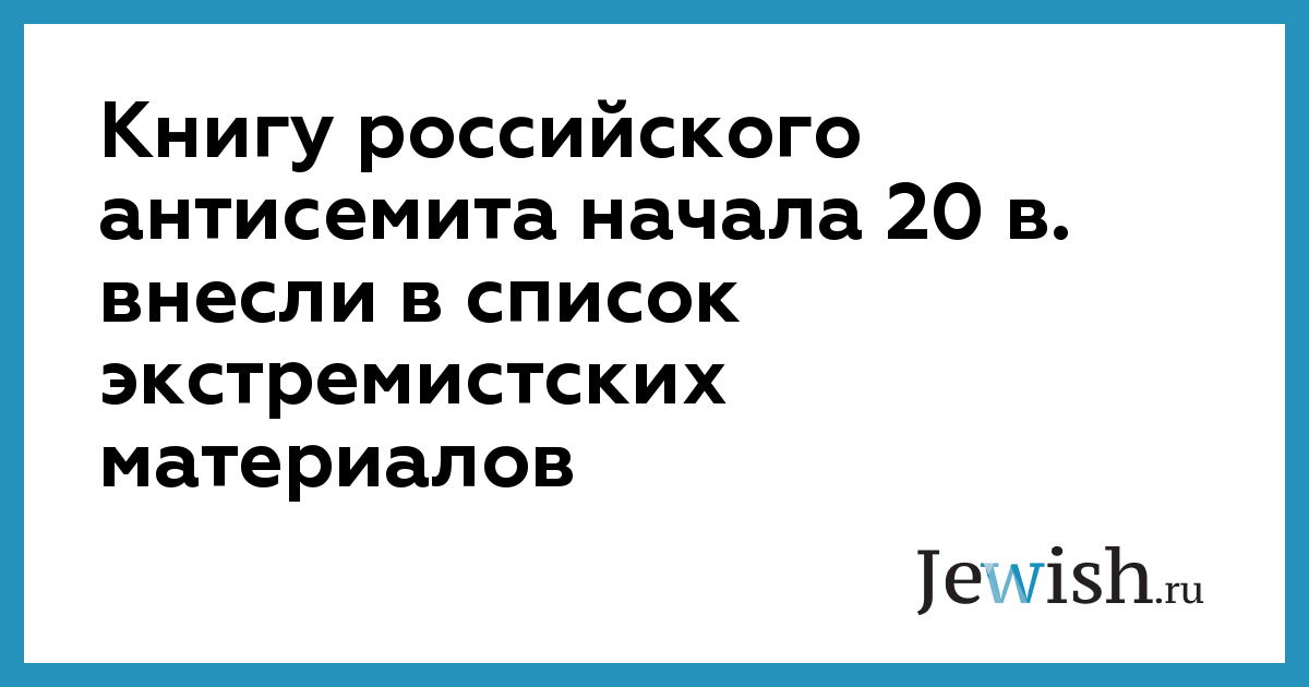 Книгу российского антисемита начала 20 в. внесли в список экстремистских материалов