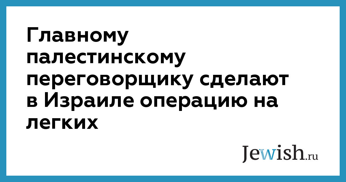 Главному палестинскому переговорщику сделают в Израиле операцию на легких