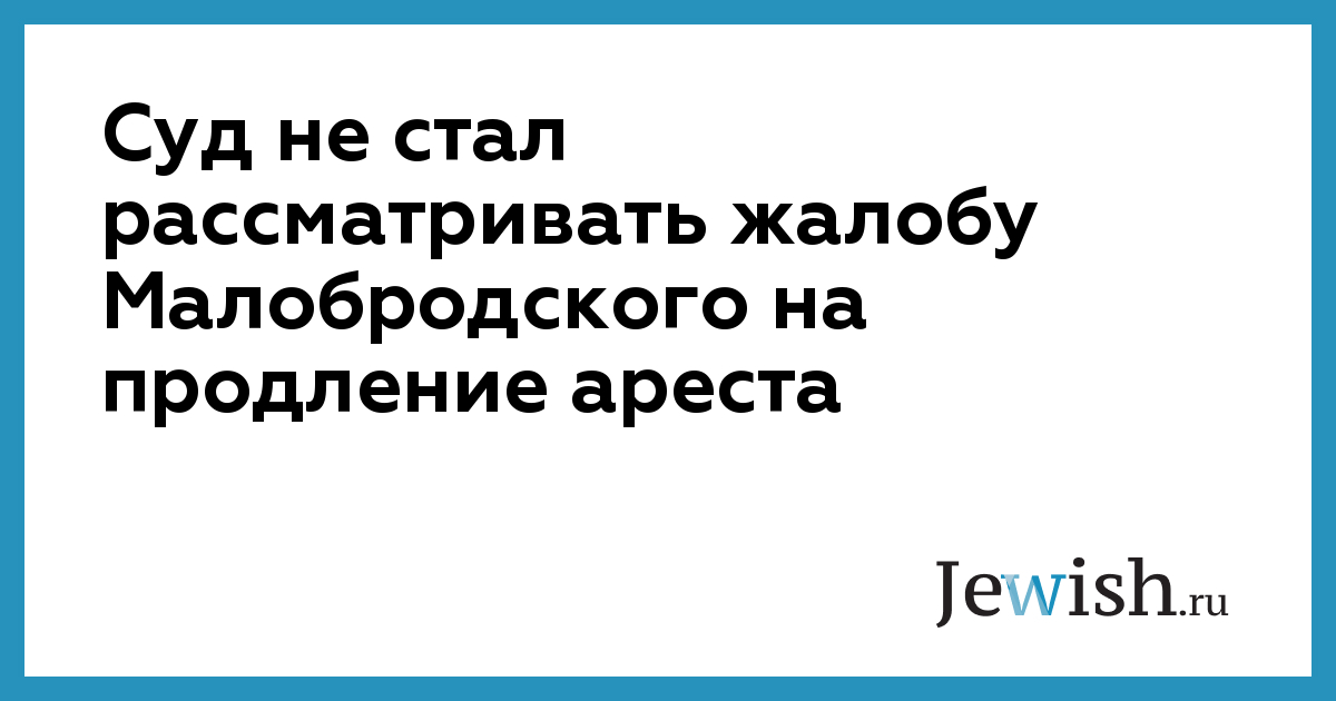 Суд не стал рассматривать жалобу Малобродского на продление ареста