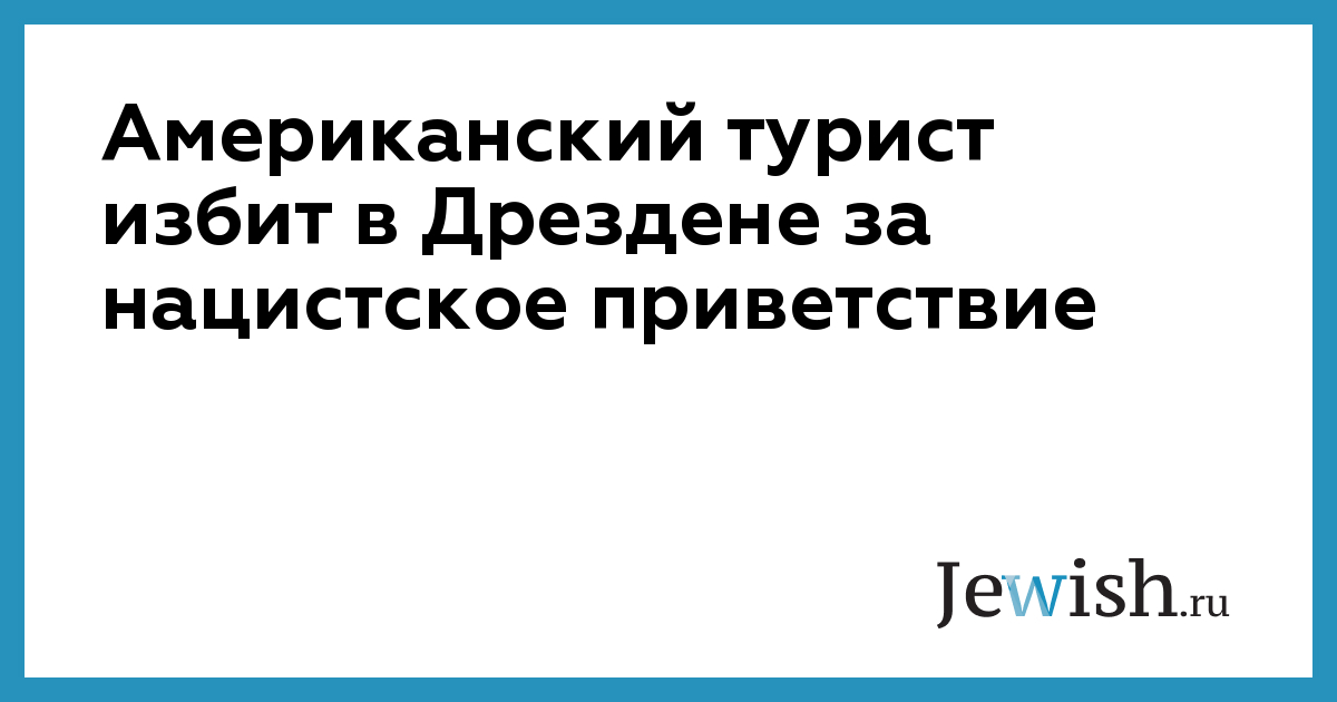 41-летний американский турист в Дрездене, «зиговавший» на улице, был избит прохожим. Инцидент произошел утром в субботу, 12 августа. По сообщению полиции, американец находился в состоянии сильного алкогольного опьянения и приветствовал встречных людей нацистским салютом. Один из прохожих ударил туриста и скрылся с места происшествия, сообщает AP.