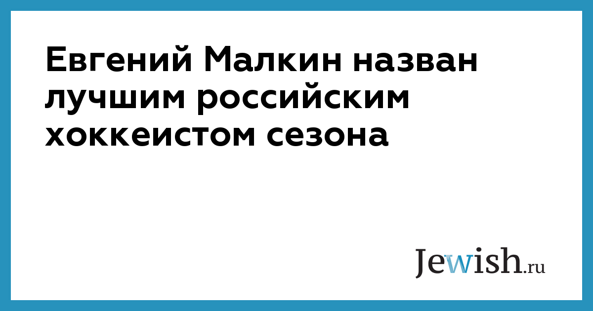 Евгений Малкин назван лучшим российским хоккеистом сезона