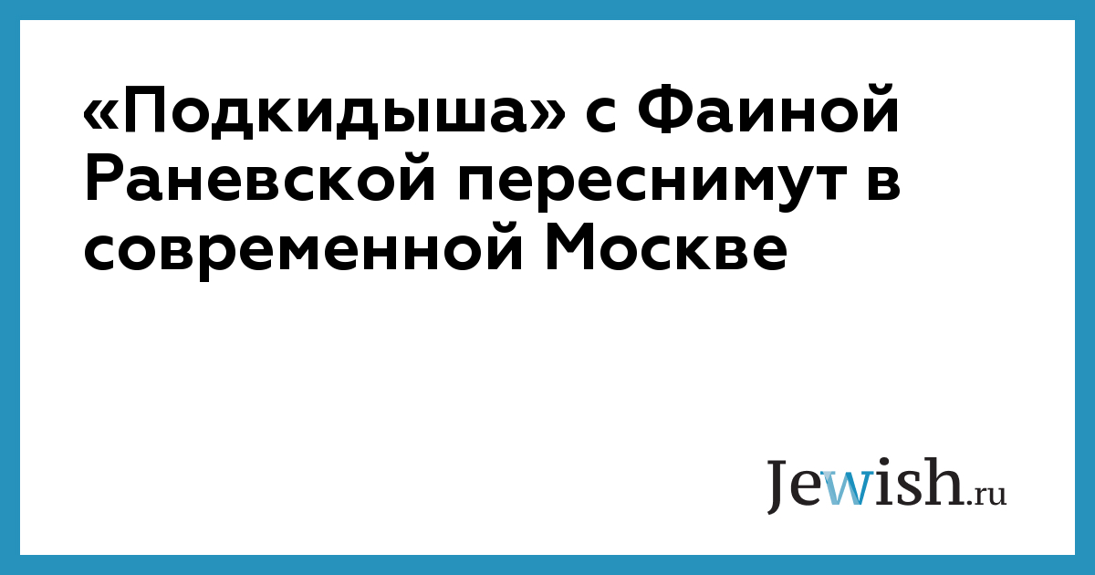 «Подкидыша» с Фаиной Раневской переснимут в современной Москве
