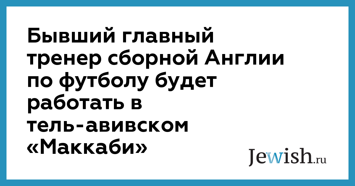 Бывший главный тренер сборной Англии по футболу будет работать в тель-авивском «Маккаби»