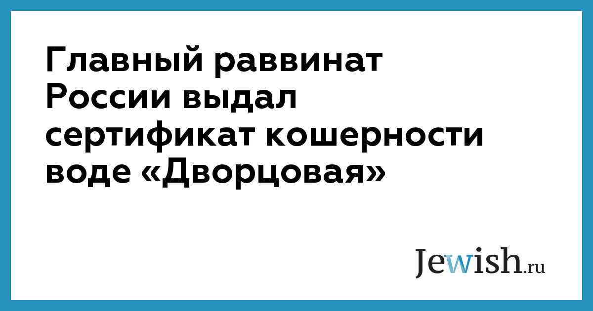 Департамент кашрута при Главной раввинате России выдал сертификат кошерности питьевой воде под маркой «Дворцовая», выпускаемой компанией «Аква». Свидетельство было выписано по результатам проверки продукции на соблюдение строгих норм еврейского закона. Наличие знака кашрута на упаковке обязательно.