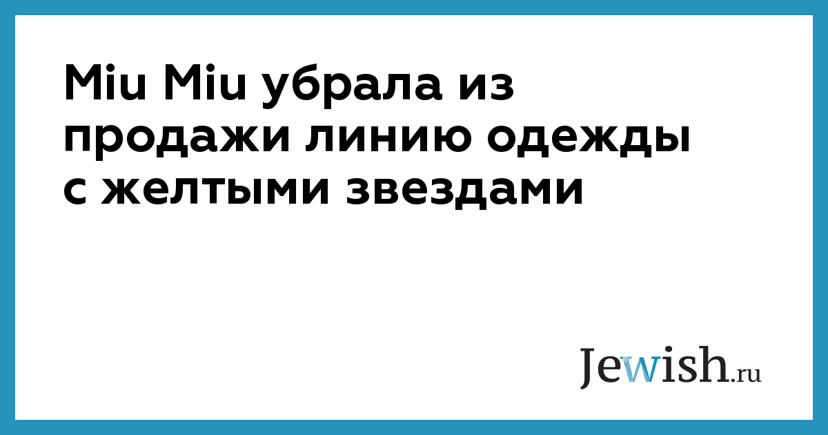 Итальянский модный дом Miu Miu убрал из продажи вещи из новой коллекции, украшенные желтыми звездами. В начале этой недели представители Всемирного еврейского конгресса обратились в Miu Miu и указали, что желтые звезды на одежде напоминает о символах, которых евреев заставляли носить нацисты. Итальянская компания принесла извинения всем оскорбленным и заявил, что линия одежды не имела никаких политических или религиозных подтекстов.