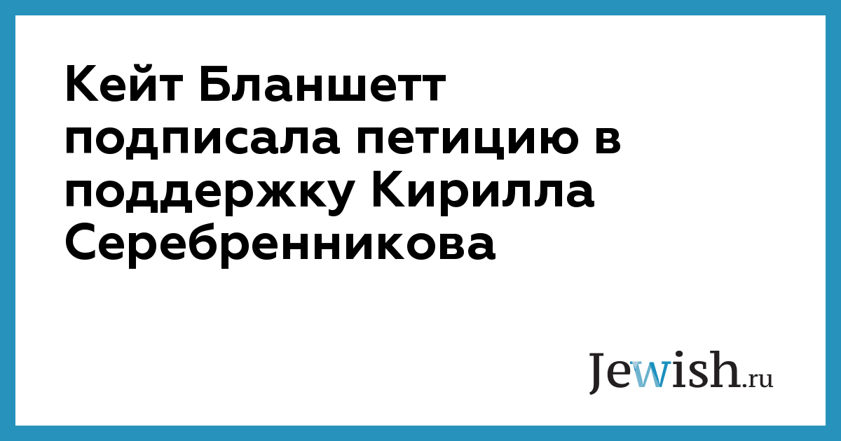 Лауреат премии «Оскар» голливудская актриса Кейт Бланшетт подписала петицию в поддержку Кирилла Серебренникова, сообщает Deutsche Welle. Инцициированное в Германии открытое письмо в защиту российского режиссера также подписали театральный режиссер Томас Остермайер и драматург Мариус фон Майенбург, режиссер Фолькер Шлёндорф и актриса Нина Хосс, лауреат Нобелевской премии по литературе Эльфрида Елинек.