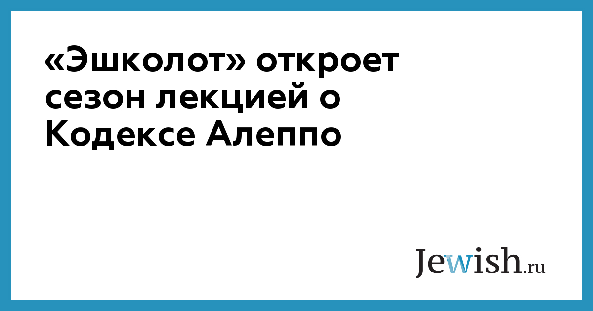 При поддержке фонда «Генезис» культурно-образовательный проект «Эшколот» открывает новый учебный сезон лекцией о тайнах Кодекса Алеппо. В воскресенье, 10 сентября, в московском парке Музеон пройдет публичная лекция об уникальной рукописи Танаха X века, которой пользовался сам Маймонид. В 1947 году толпа погромщиков выбросила ее из сожженной синагоги Алеппо, и рукопись была обнаружена вновь только спустя несколько лет, уже в Израиле. В Музеоне журналист «Ассошиэйтед пресс» Матти Фридман расскажет свою версию истории Кодекса, основанную на документах и свидетельствах очевидцев. Лекция пройдет 10 сентября в 19.00 по адресу Крымский вал, владение 2, павильон «Школа». Вход свободный по предварительной регистрации.