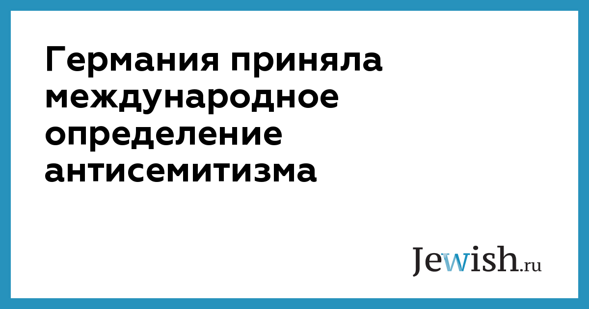 Правительство ФРГ в среду, 20 сентября, официально приняло определение антисемитизма, разработанное Международной организацией по сотрудничеству в увековечении и изучении Холокоста (IHRA). Одобренное правительством ФРГ определение гласит: «Антисемитизм — это определенное восприятие евреев, которое может выражаться в ненависти по отношению к евреям. Антисемитизм словом или делом направлен против отдельных лиц еврейского или нееврейского происхождения и/или их имущества, а также против еврейских общинных организаций или религиозных объектов». Эта дефиниция была принята 31 государством-членом IHRA в мае 2016 года и уже одобрена Израилем, Великобританией, Австрией и Румынией, отмечает Deutsche Welle.