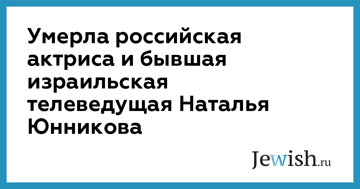 Умерла российская актриса и бывшая израильская телеведущая Наталья Юнникова
