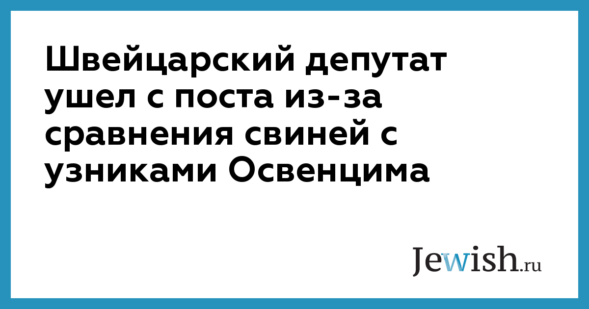 Швейцарский депутат покинул партию после скандала, вызванного использованного им сравнением свиней, которых отправляют на забой, с узниками Освенцима. В четверг на прошлой неделе представитель партии «зеленых» Йонас Фрикер заявил в парламенте, что отправляемые в Освенцим были в лучшем положении, чем свиньи, потому что у них был хотя бы мизерный шанс выжить. Животные на скотобойне же обречены на гибель, заявил Фрикер.