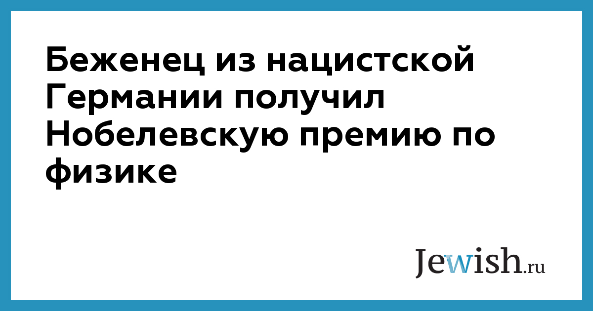 Беженец из нацистской Германии получил Нобелевскую премию по физике