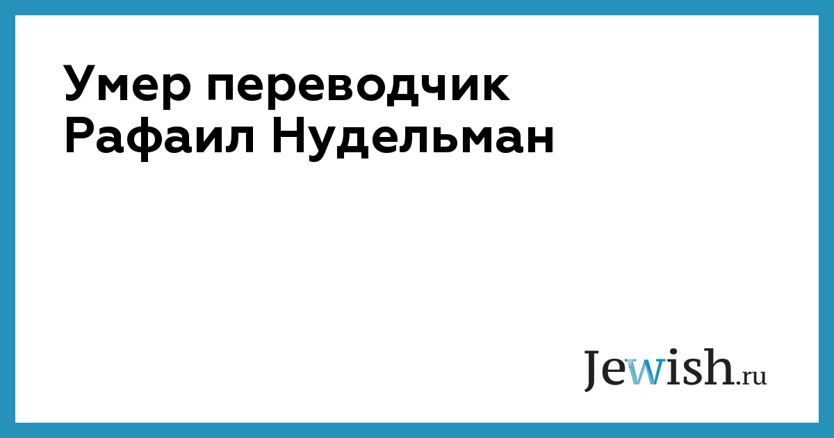 В Израиле в возрасте 86 лет скончался переводчик Рафаил Нудельман — человек, переведший на русский книги Шая Агнона, Давида Гроссмана, Меира Шалева и других известных израильских и не только израильских писателей. Рафаил Нудельман работал совместно с женой Аллой Фурман. О смерти переводчика сообщил журнал «Лехаим».