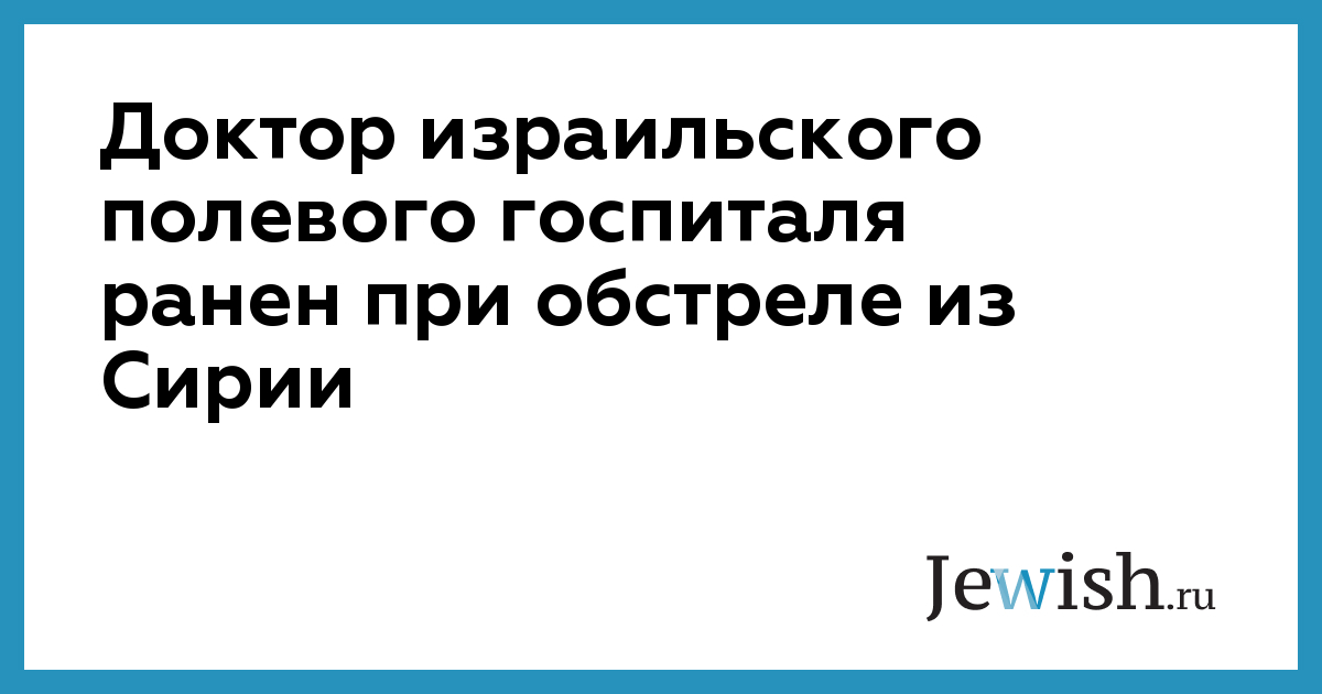 Доктор израильского полевого госпиталя ранен при обстреле из Сирии