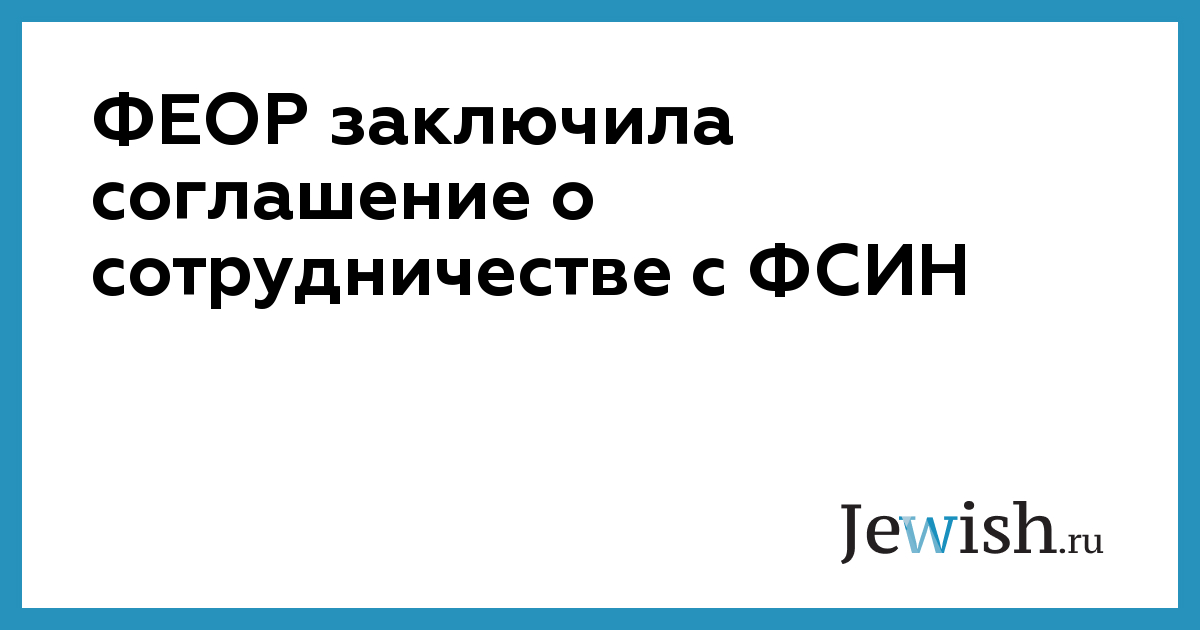 Федерация еврейских общин России (ФЕОР) и Федеральная служба исполнения наказаний (ФСИН) подписали соглашение о взаимодействии. 19 октября в Московском еврейском общинном центре состоялась рабочая встреча главы пенитенциарного ведомства Геннадия Корненко и президента Федерации еврейских общин России Александра Бороды.