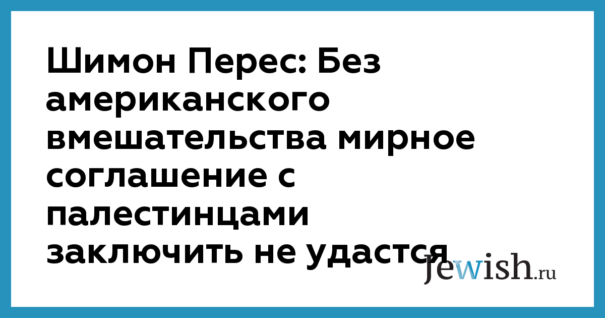 Шимон Перес: Без американского вмешательства мирное соглашение с палестинцами заключить не удастся