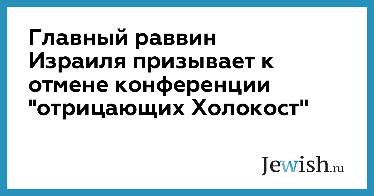 Главный раввин Израиля призывает к отмене конференции "отрицающих Холокост"