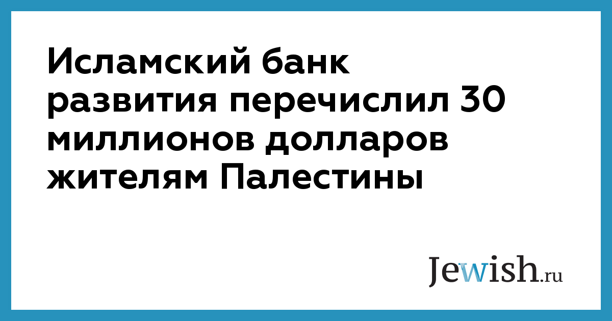Исламский банк развития перечислил 30 миллионов долларов жителям Палестины