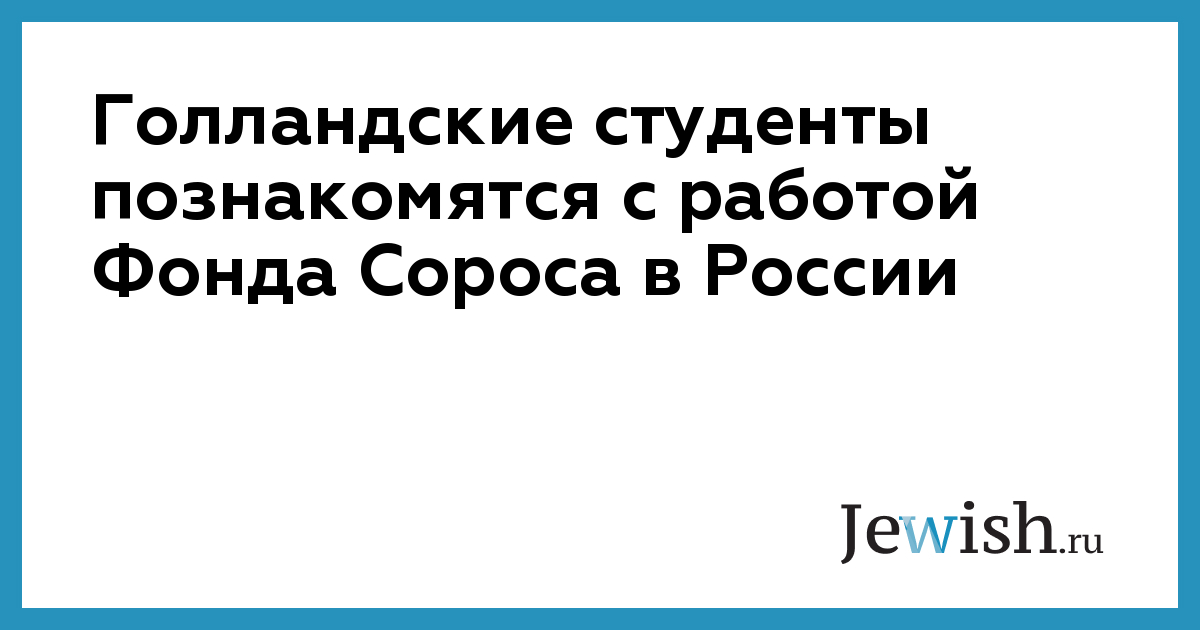 16 мая состоится визит в Санкт–Петербургское отделение Института открытого общества группы голландских студентов. Он пройдет под эгидой совместной программы Голландского Института в Санкт-Петербурге и исследовательской организации "Союз по международной и общей экономике". Студенты встретятся с сотрудниками ИОО и получат представление о работе Фонда Сороса в России. Институт "Открытое общество" (Фонд Сороса) — международная благотворительная организация, которая инициирует и поддерживает программы в области образования, культуры и искусства, здравоохранения, гражданских инициатив. Представительства Фонда работают более чем в 30 странах мира. Санкт-Петербургское отделение (работает в Петербурге с 1990 г. ) осуществляет собственные программы и проекты, активно участвуя в деятельности общероссийских мегапроектов и программ, обеспечивая их реализацию на Северо-Западе. Среди многочисленных международных (сетевых) программ Фонда Сороса Санкт-Петербургское отделение координирует такие, как "Восток-Восток", программы Центрального Европейского университета, "Электронная издательская деятельность", "Культурные связи открытого общества", "Медицинские семинары в Зальцбурге" и др., сообщает агентство Regions.ru.