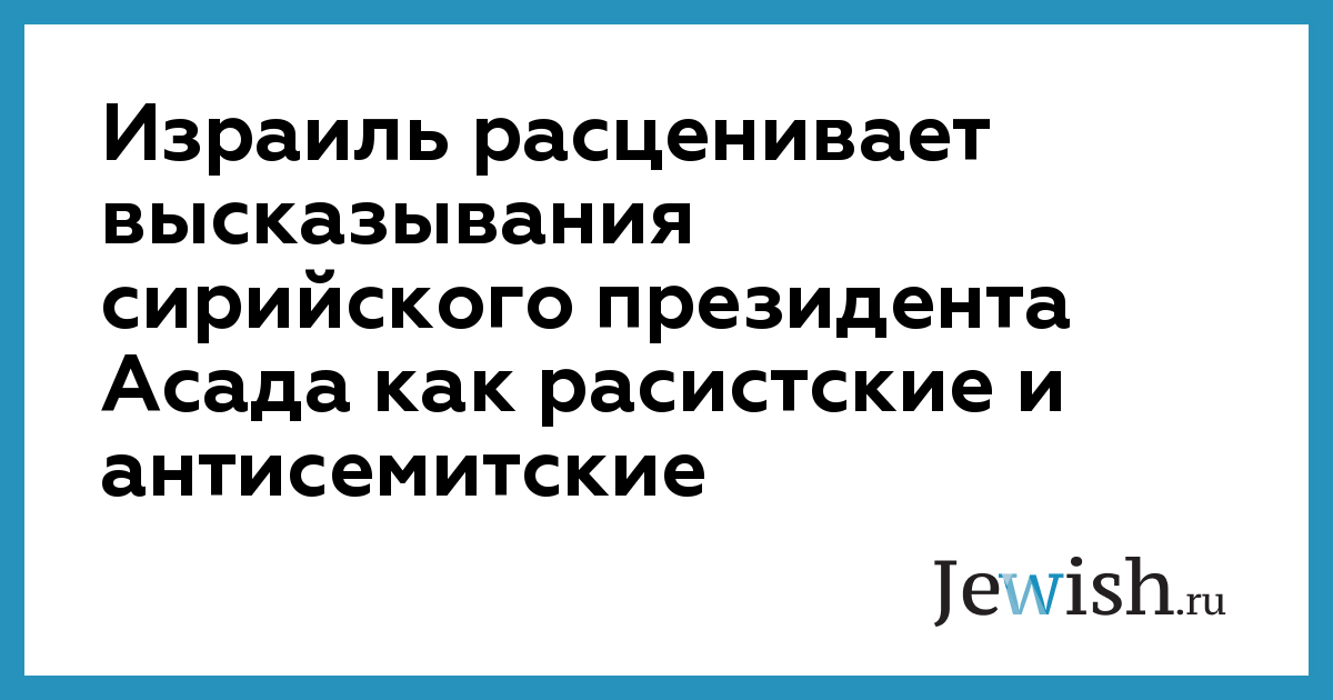 Израиль расценивает высказывания сирийского президента Асада как расистские и антисемитские