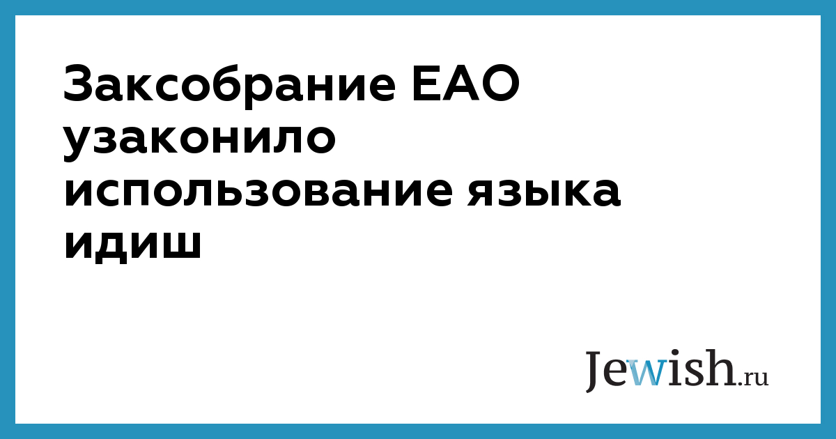 Заксобрание Еврейской автономной области приняло законопроект, который закрепляет возможность использования языка идиш в этом регионе при указании названий населенных пунктов, улиц и площадей, на вывесках государственных и муниципальных органов, а также в других случаях. Отмечается, что инициатива была предложена новым прокурором области Заурбеком Джанхотовым с целью сохранения и развития идиша.