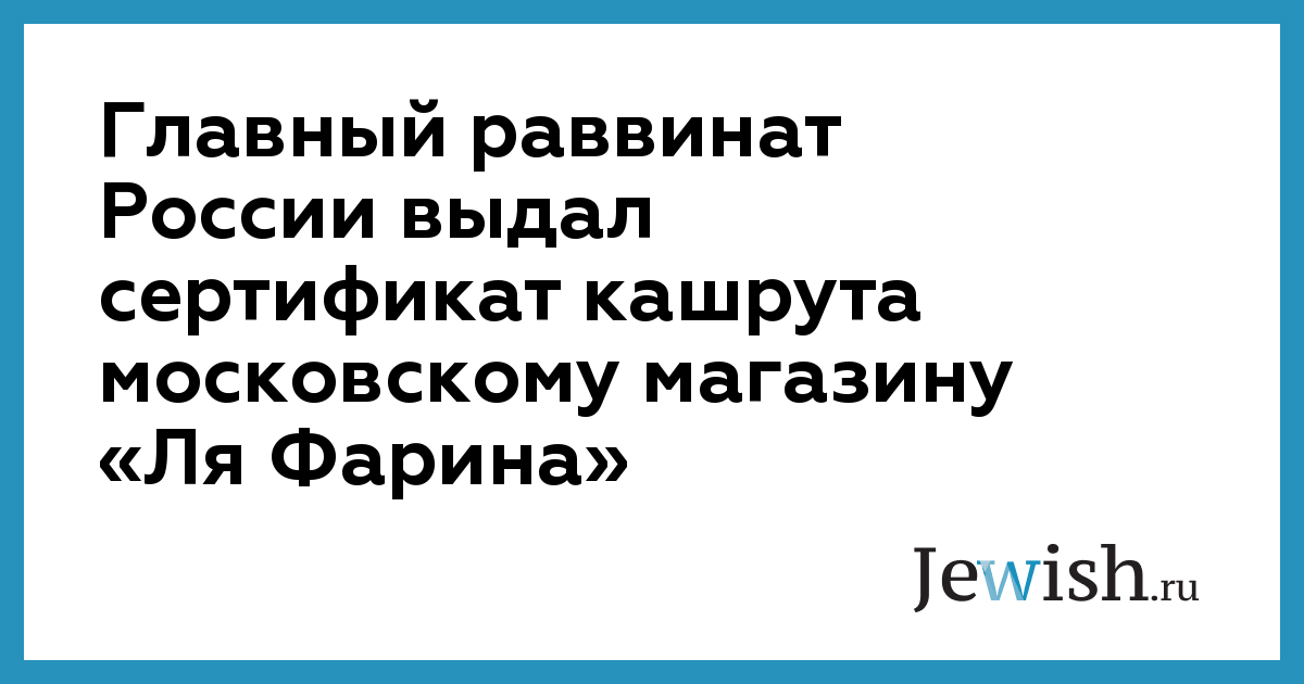 Главный раввинат России выдал сертификат кашрута московскому магазину «Ля Фарина»