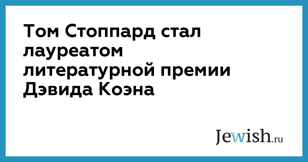 Британский драматург Том Стоппард, автор десятков известных пьес и сценариев, стал лауреатом престижной премии Давида Коэна по литературе. Эта премия с фондом в 40 тыс. фунтов (около 52 тыс. долларов) вручается раз в два года британскому или ирландскому писателю за достижения в области литературы. Как заявил Стоппард британскому изданию The Jewish Chronicle, он знает нескольких лауреатов этой премии и глубоко восхищается ими, но никогда не думал, что сам войдет в их число. Жюри премии отметило «наэлектризованный диалог» Стоппарда, яркость создаваемых им сценических картин, его глубокое понимание литературы и истории.