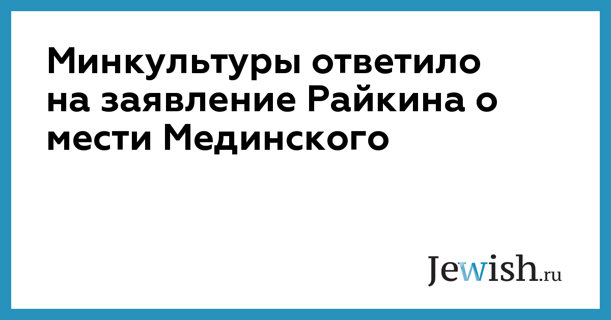 В Министерстве культуры прокомментировали заявление художественного руководителя «Сатирикона» Константина Райкина, который заявил, что глава ведомства Владимир Мединский «целенаправленно вредит» его театру в качестве «мести и наказания» за критику в адрес властей. Замглавы министерства Александр Журавский сообщил журналистам, что в министерстве «чрезвычайно удивлены» словам Райкина.