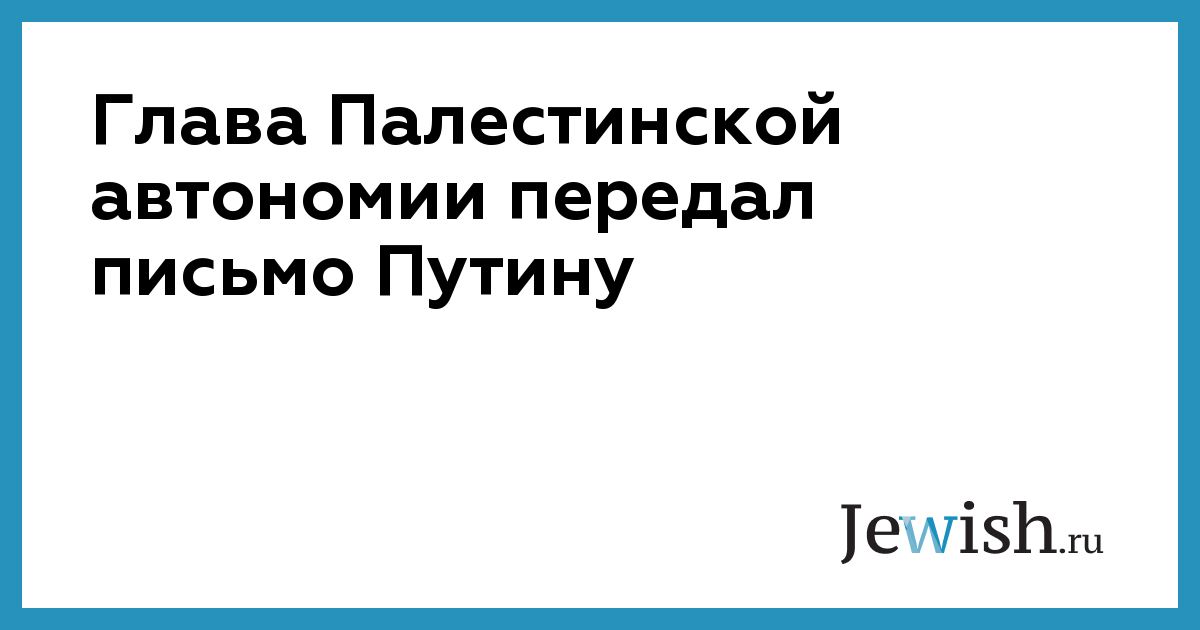 Председатель Палестинской автономии Махмуд Аббас направил послание президенту России Владимиру Путину, в котором, в частности, речь идет о последних событиях на Ближнем Востоке. Об этом сообщает ТАСС со ссылкой на министра ПА по гражданским делам Хусейна аш-Шейха. «Наш президент заинтересован в том, чтобы наши друзья в России были в курсе всего происходящего в регионе», — заявил аш-Шейх. Представитель Палестинской автономии добавил, что у ПА «исторически хорошие отношения с Россией» и Махмуд Аббас «всегда будет готов приехать в Россию по приглашению российского руководства».