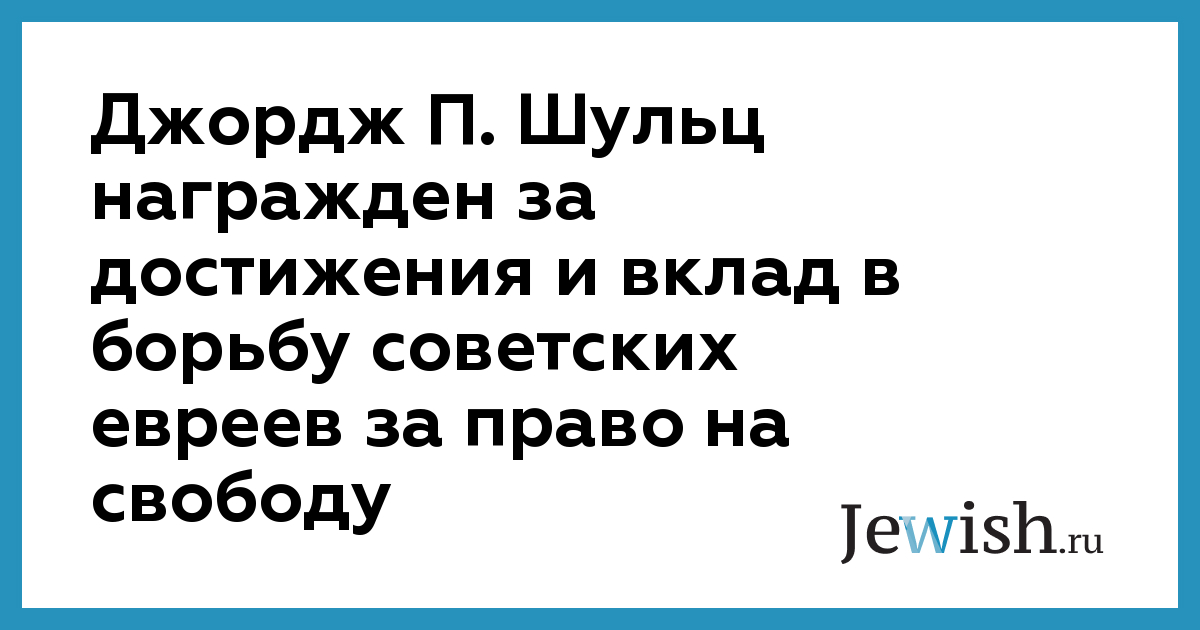 В рамках конференции Лимуд, проходившей в Сан-Франциско, в которой приняли участие более 800 русскоязычных евреев, бывший госсекретарь США Джордж П. Шульц получил награду за достижения и вклад в борьбу советских евреев за право на свободу. Вручил награду Натан Щаранский, бывший диссидент, а ныне – председатель Еврейского агентства Израиля Сохнут, сообщает Arutz Sheva.