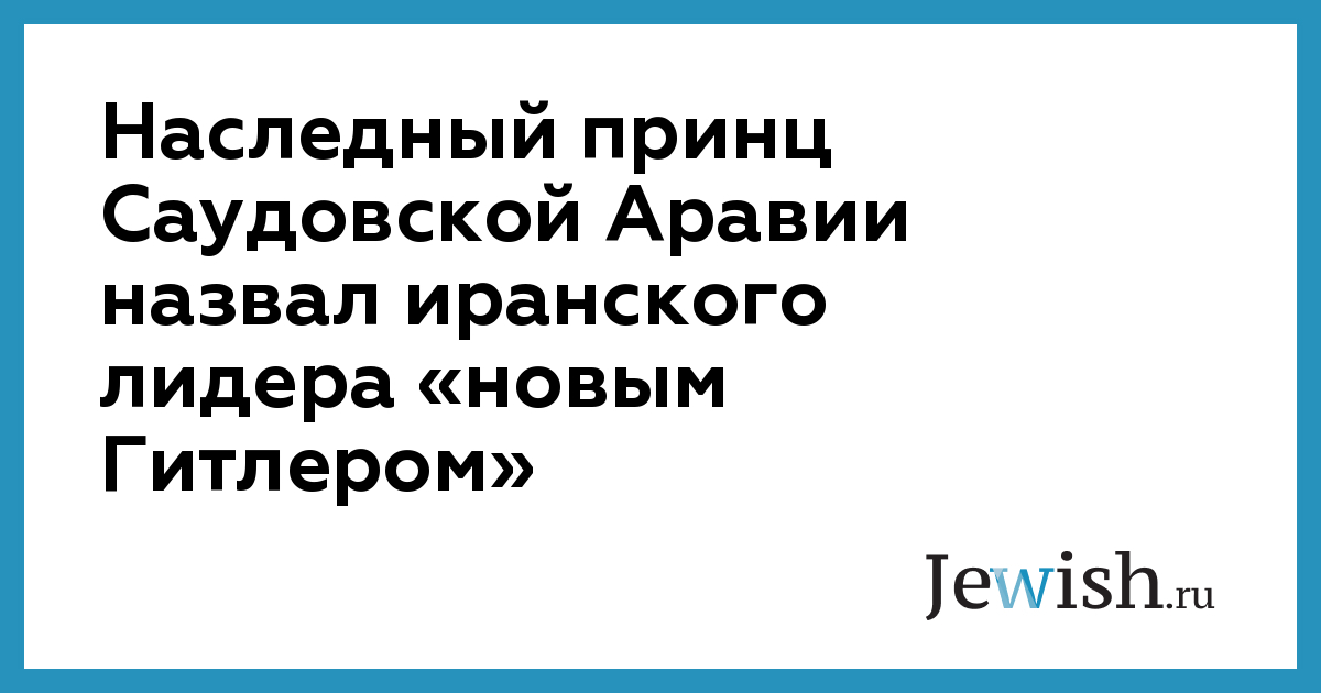 «На примере Европы мы узнали, что политика умиротворения не работает. Мы не хотим, чтобы новый Гитлер из Ирана повторил на Ближнем Востоке то, что случилось в Европе», — заявил принц. Мухаммед бен Салман Аль Сауд ни разу не упомянул Израиль в интервью, но, как указывает израильское издание Times of Israel, его высказывания о Хаменеи и Иране близко напоминают слова премьер-министра Биньямина Нетаньяху. Глава израильского правительства также неоднократно сравнивал Иран с нацистской Германией.