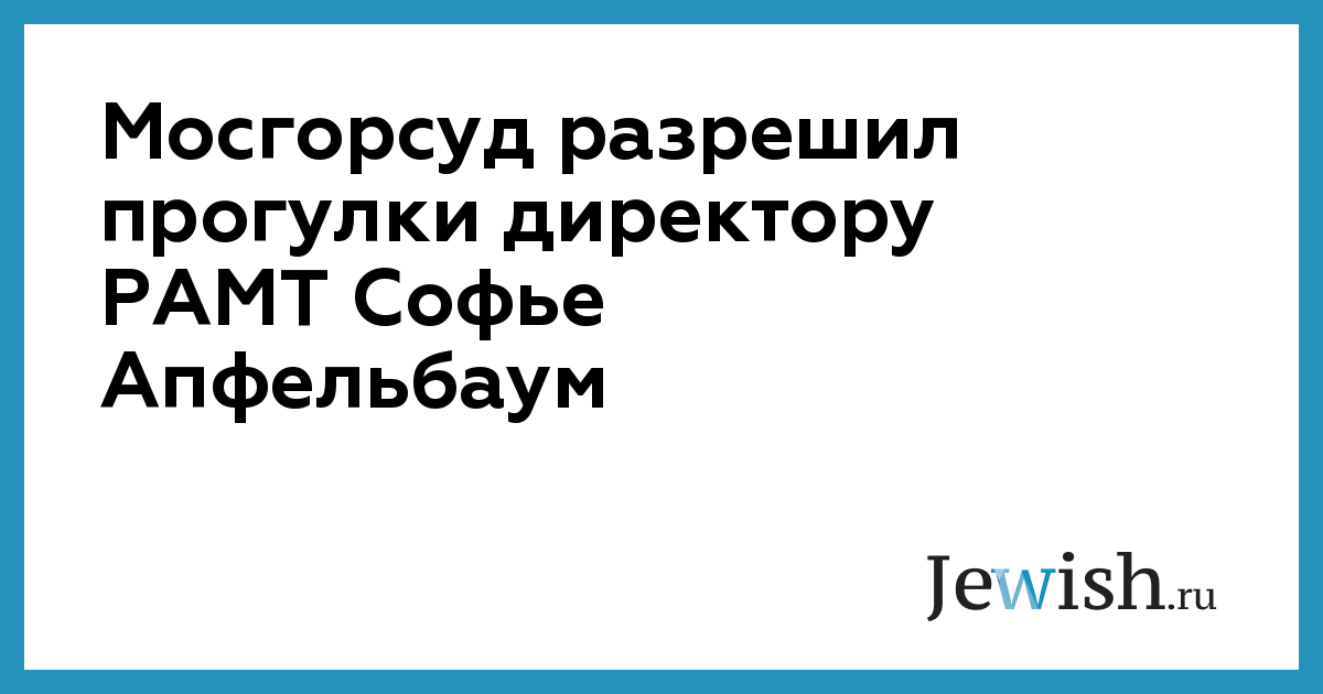 Мосгорсуд разрешил прогулки директору РАМТ Софье Апфельбаум