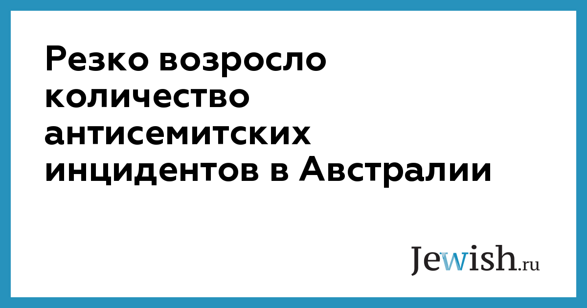 Данные отчета, опубликованного накануне Исполнительным советом австралийского еврейства (ECJA), свидетельствуют о том, что количество антисемитских инцидентов на территории Зеленого континента возросло за год на 10%. Об этом сообщает NEWSRU.co.il.