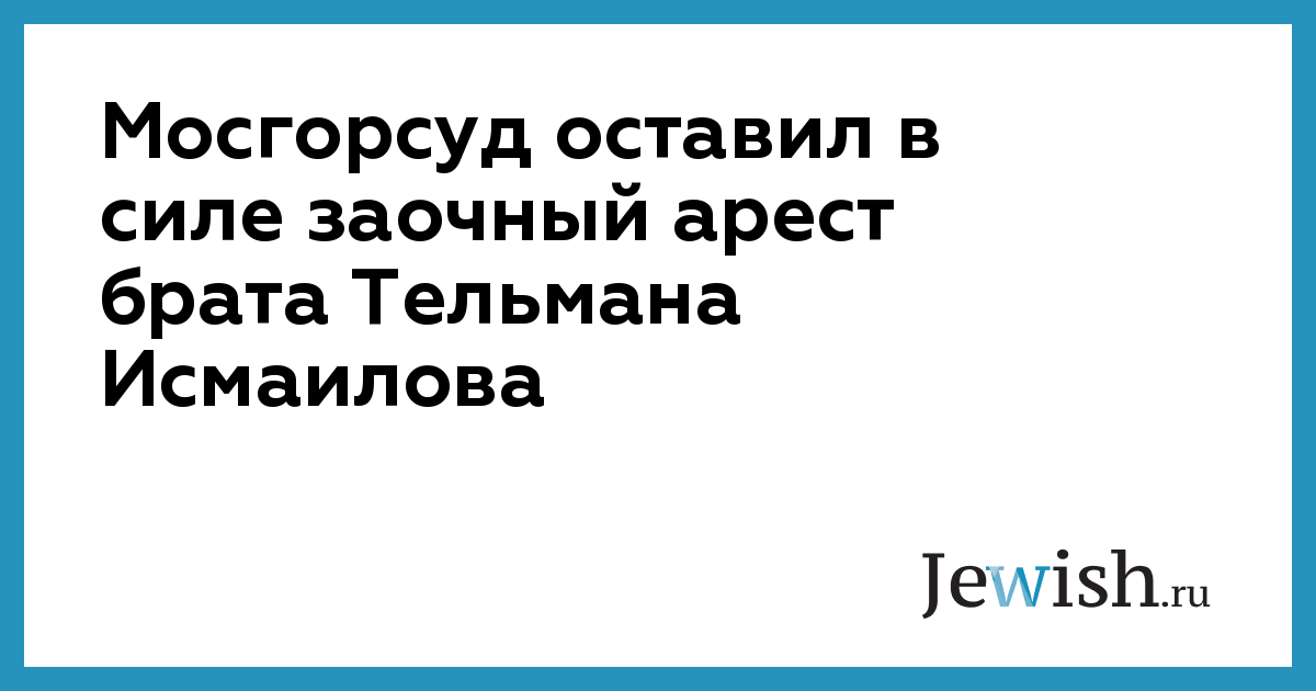 Мосгорсуд оставил в силе решение Басманного суда столицы о заочном аресте Вагифа Исмаилова, старшего брата бизнесмена Тельмана Исмаилова. Об этом сообщает РБК со ссылкой на ИА Интерфакс. Таким образом, апелляционная жалоба была отклонена.