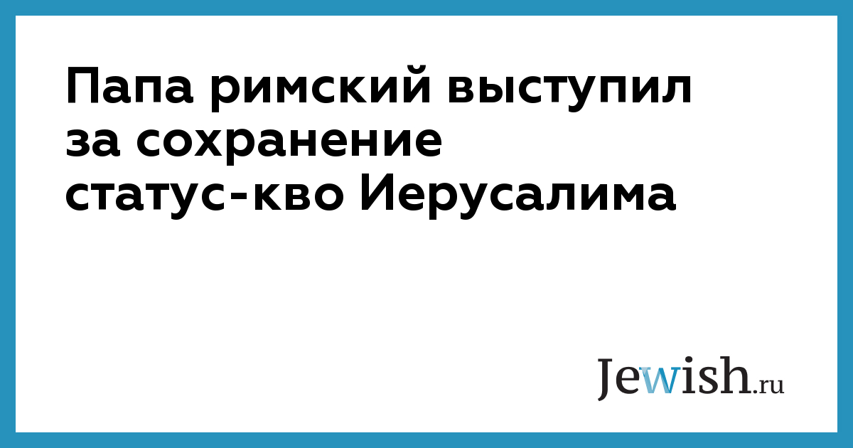 Папа римский Франциск выступил за сохранение существующего статуса-кво Иерусалима, сообщает Reuters. «Я обращаюсь с призывом ко всем уважать статус-кво города в соответствии c резолюциями ООН», — сказал глава Римской Католической церкви. «Я не могу скрыть глубокую обеспокоенность в связи со сложившейся ситуацией. Иерусалим является уникальным городом, священным для иудеев, христиан и мусульман», — добавил Франциск. Папа римский также призвал «избегать усиления напряженности в мире».
