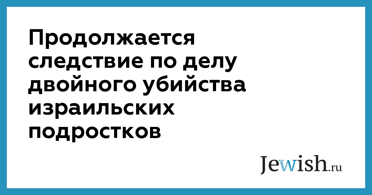 Продолжается следствие по делу двойного убийства израильских подростков