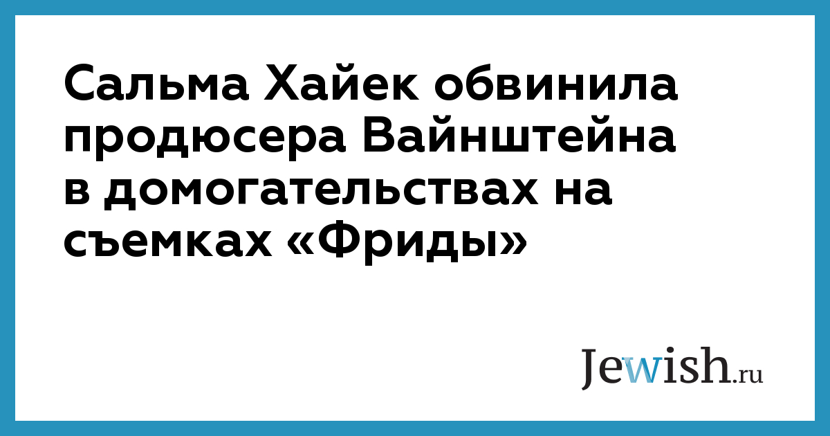 Сальма Хайек обвинила продюсера Харви Вайнштейна в сексуальных домогательствах, имевших место на съемках фильма «Фрида» в начале 2000-х. Рассказ актрисы опубликован в New York Times. По словам Хайек, после того, как ее выбрали на роль Фриды Кало, ей пришлось постоянно отказывать Вайнштейну.