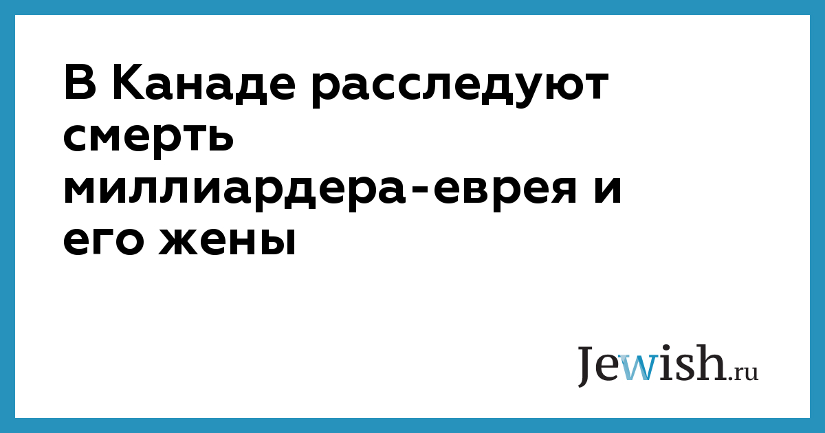 В Канаде расследуют смерть миллиардера-еврея и его жены