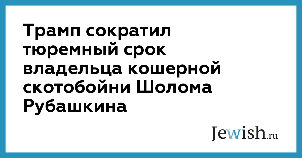 Президент США Дональд Трамп сократил срок тюремного заключения 57-летнего Шолома Рубашкина, ранее возглавлявшего крупнейшую в США компанию по производству кошерного мяса. В 2009 году Рубашкин был приговорен к 27 годам лишения свободы за финансовые махинации и отмывку денег. По словам Трампа, этот приговор многие называют чрезмерным, учитывая, что обычно такого рода преступления предполагают гораздо менее серьезные наказания.