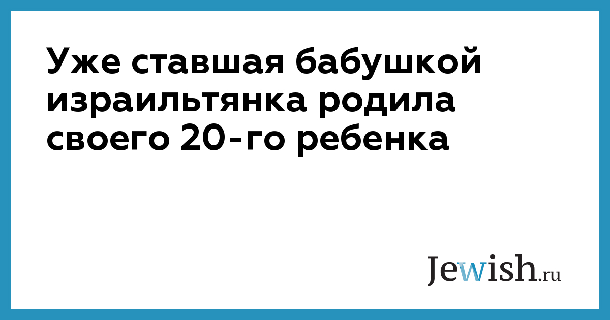 42-летняя женщина из ультрарелигиозного иерусалимского района Меа Шаарим родила на этой неделе своего 20-го ребенка в больнице «Хадасса Эйн Керем». Это были 19-е роды женщины, которая в предыдущую беременность произвела на свет двойняшек. Роды прошли легко, женщина родила мальчика.