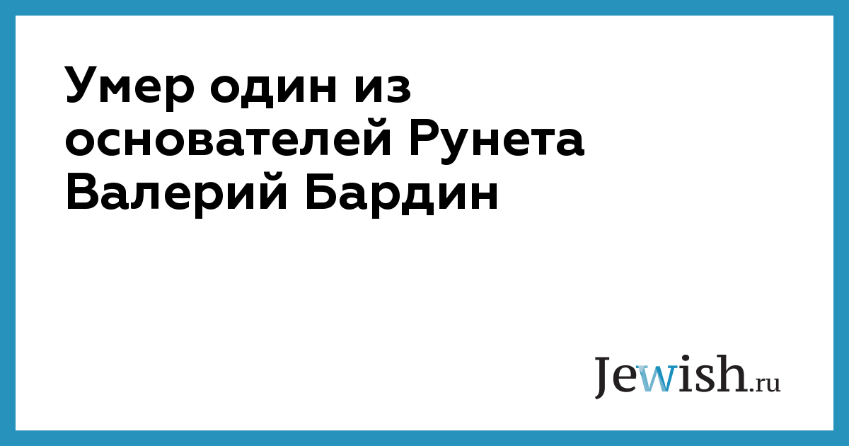 В Москве в возрасте 63 лет скончался один из создателей российского сегмента интернета Валерий Бардин, сообщает ТАСС. Причиной смерти, по словам вдовы, стало онкологическое заболевание.