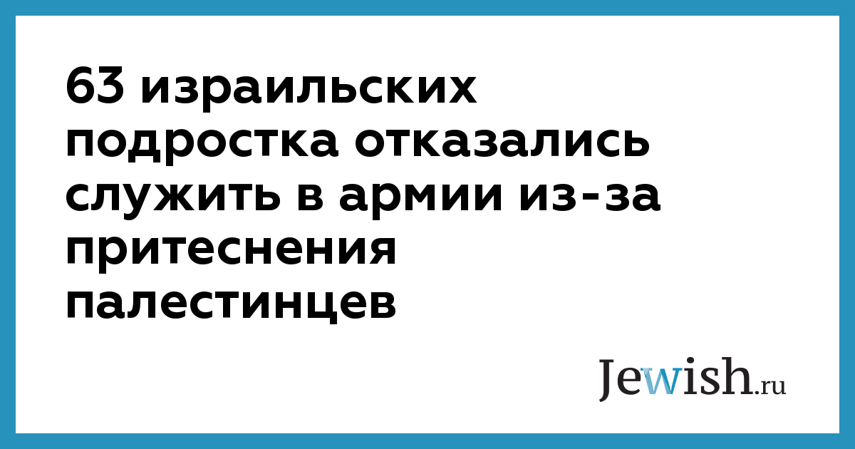 63 израильских призывника заявили о своем отказе служить в армии в открытом письме, обращенном к властям страны. Письмо, опубликованное сегодня в израильской газете «Едиот ахронот», адресовано премьер-министру Израиля Биньямину Нетаньяху, министру обороны Авигдору Либерману, министру образования Нафтали Беннету и главе Генштаба Гади Айзенкоту.