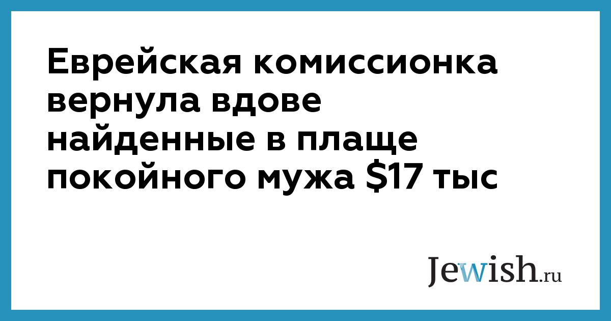 Еврейская комиссионка вернула вдове найденные в плаще покойного мужа $17 тыс